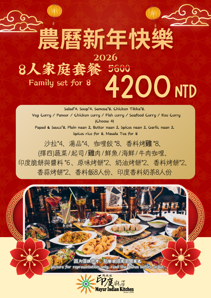 Must choose menu NTD 800/person and above